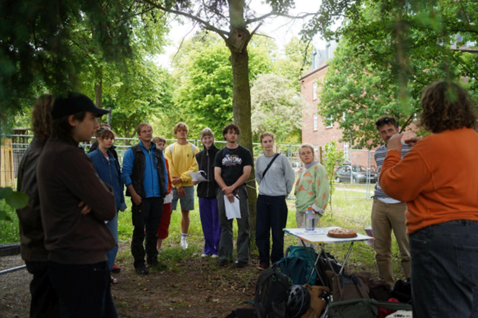 Dienstag, 24. Juni 2025. Es ist bewölkt, der Wind frischt auf – aber der Regen bleibt dezent. Zwischen Baustellenzäunen versammelt sich eine Gruppe von 18 Menschen auf dem Leuphana Campus. Sie betreten den Waldgarten und laufen durch das Gelände, in den Händen Smartphones, aber doch in die Natur vertieft. Was machen die da?